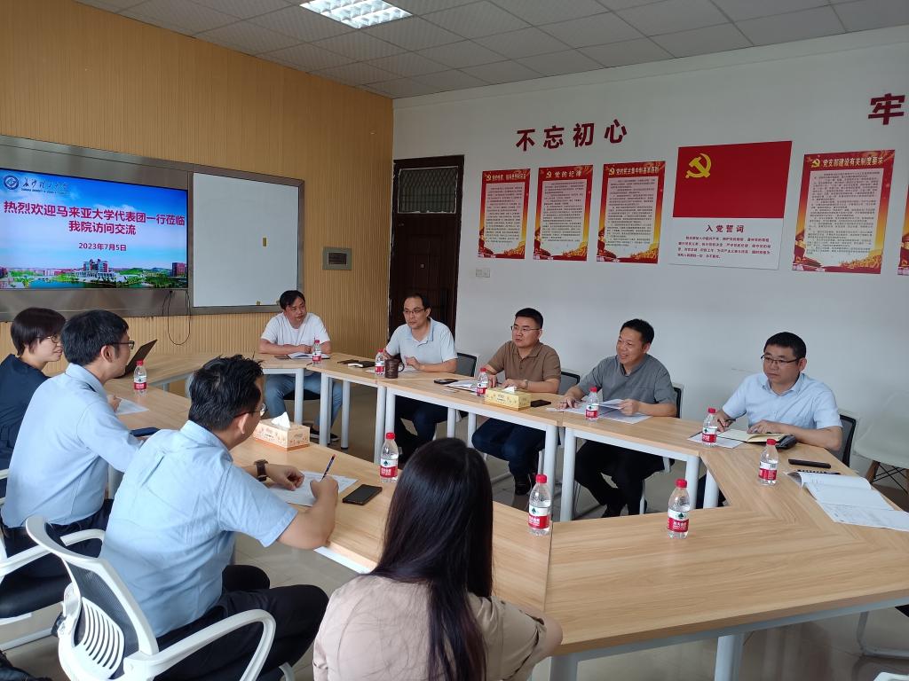 7月5日上午,马来亚大学工学院副院长陈祖洋一行3人来汽机学院开展访问交流。会议在工一B414会议室举行,校图书馆馆长杜荣华、国际工学院副院长吴悠、能动学院副院长何建军,汽机学院副院长(主持工作)胡林、副书记兼副院长唐宏宾、机电系主任陈书函参加了交流会议。会议由唐宏宾主持。