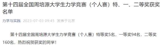 全国周培源大学生力学竞赛是经教育部高等教育司批准,高等学校力学教学指导委员会、中国力学学会、周培源基金会等共同设立的一项全国性大学生力学科技活动,是我国最具含金量与影响力的力学类赛事,每两年举办一次,旨在促进高等学校力学基础课程的改革与建设,增进青年学生学习力学的兴趣,培养分析与解决实际问题的能力,为青年学子提供一个展示坚实力学基础知识和思维能力的舞台。2023年5月21日,第十四届全国周培源大学生力学竞赛在全国各大城市同时举行,来自全国30个省、直辖市和自治区的30443人报名参赛。
