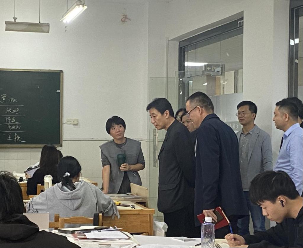 庄惟敏来到专业教室,深入课堂教学一线,现场了解建筑学院专业课教师授课和学生课堂学习情况,他强调,要充分利用教师资源优势,打造大师课程,分享设计经验,拓展学生视野。他还指出,教师在建筑设计课程教学环节设置时,要带领学生从草图设计到方案形成再到模型搭建,使学生能深度感受和学习建筑设计的全过程。