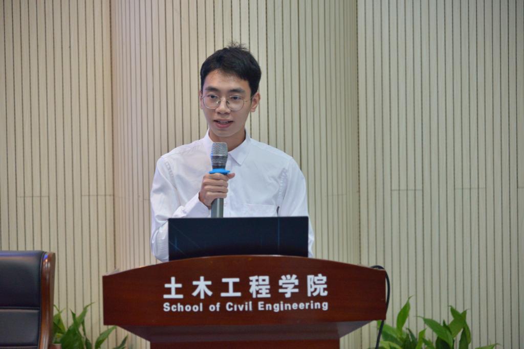 随后,黄阿明、付果、江河分别对三星、四星、五星志愿者代表颁奖。在这其中,志愿者代表王宇星、郑珍、蒋志鹏和刘沛奇进行了分享,他们结合各自的志愿服务工作,分享了自己的参与感受和收获,并表示将继续践行志愿服务精神,展现出土木学子冲锋在前、齐心协力、无私奉献的志愿精神风貌。最后,江河进行总结讲话。他表示,本次大赛的成功举办,得到了竞赛委员会和各参赛高校的高度肯定,离不开学院老师和志愿者同学的辛勤付出。他强调,志愿者要珍惜这次难得的锻炼机会,好好总结相关经验,完成自身的成长和蜕变。他希望,志愿者们能够继续展现土木学子“大格局、大气魄、大视野”的精神风貌和专业素养,提升科技创新能力和志愿服务精神,为一流土木学院建设不断贡献青春力量。