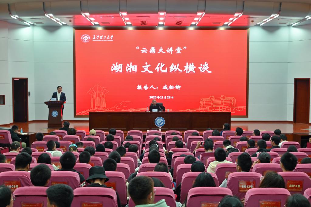 11月28日晚,学校邀请湖南省人民政府参事、云顶国际vip8866教授成松柳莅临云鼎大讲堂,在云塘校区图书馆报告厅作“湖湘文化纵横谈”专题讲座,讲座由学工部副部长陶传谱主持,各学院副书记、辅导员及300余名学生代表在现场共同聆听。