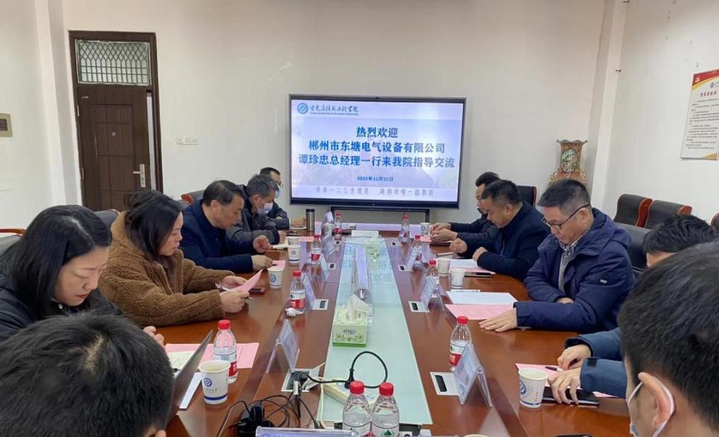 12月22日上午,郴州市东塘电气设备有限公司总经理谭珍忠一行来学院就人才培养、科技合作等问题调研交流,学院党委书记丁丹、副书记陶双、副院长唐欣、副院长王文以及相关教师代表参加。