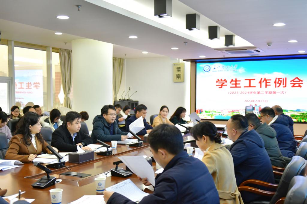 2月28日下午,学校在一办公楼六会议室召开2023-2024学年第二学期第一次学生工作例会,副校长钱国平主持会议,学校相关职能部门及各学院学生工作负责人参加会议。
