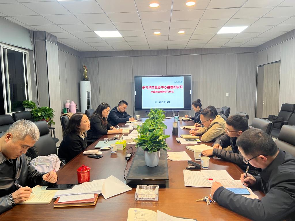 3月15日,电气学院党委理论学习中心组召开会议,传达学习习近平总书记在全国两会期间重要讲话精神和全国两会精神,深入学习习近平总书记关于因地制宜发展新质生产力、谋划进一步全面深化改革重大举措、统筹推进科技创新和产业创新、以高水平保护支撑高质量发展的重要论述,并结合学院发展实际研讨交流贯彻落实工作。学院党委书记丁丹主持会议。