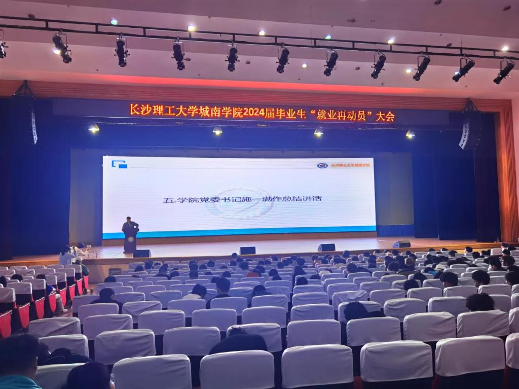 为全面推进2024届毕业生就业工作,引导毕业生树立正确的就业观念,提高就业积极性和主动性。3月21日下午,城南学院在五教大礼堂召开2024届毕业生“就业再动员”大会。院党委书记施一满、院长赵华、党委副书记陶双、副院长朱广峰、招就办主任廖瑞虎、全体系主任和就业专干出席会议,2024届毕业生以及部分大三大二学生参加会议。会议由陶双主持。大会邀请到楚天科技人力资源经理唐美强和人本股份校园招聘经理何鹏飞为毕业生作求职面试辅导。