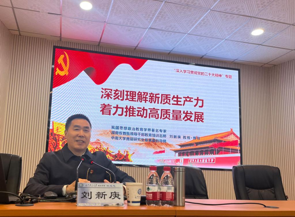 刘新庚以《深刻理解新质生产力 着力推动高质量发展》为题,从“聚焦二十大战略部署的首要任务”“把准当前高质量发展的时代内涵”“发展新质生产力推动高质量发展”三个方面深度阐释新质生产力的内涵、要义与重大影响。他强调,高质量发展是全面建设社会主义现代化国家的首要任务,新质生产力是实现高质量发展的重要着力点,要因地制宜发展新质生产力,把贯彻新发展理念、构建新发展格局、促进共同富裕贯穿经济社会发展各方面全过程,深入推进发展方式、发展动力、发展领域、发展质量变革,开创我国高质量发展新局面。