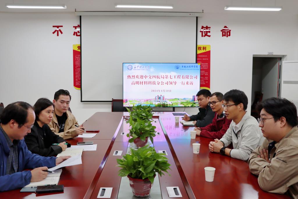 4月10日下午,卓越工程师学院与中交四航局第七工程有限公司高明材料科技分公司(以下简称材料分公司)在新能源大楼4栋419开展产学研交流会。卓越工程师学院党委副书记兼副院长陈华、副院长杨现锋、吴钢及材料分公司张洋总经理一行参加会议。