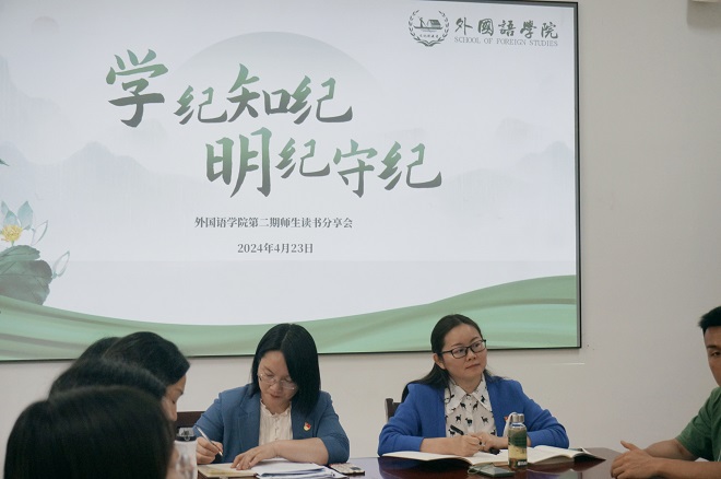 4月23日正值世界读书日,外国语学院以“学纪、知纪、明纪、守纪”为主题开展第二期师生读书分享会。学院联合教职工党支部与学生党支部共读新版《中国共产党纪律处分条例》,深入学习党纪党规,进一步强化师生党员的规矩意识,增强师生党员的政治敏锐性和政治鉴别力。