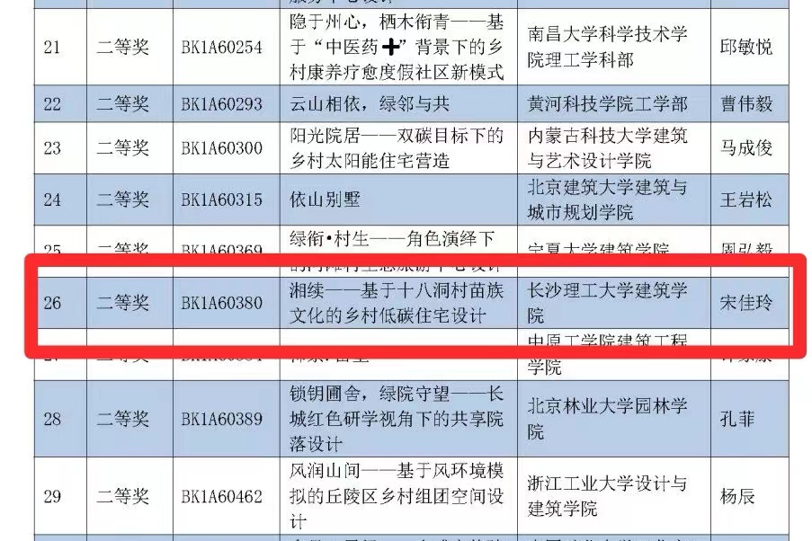 5月7日,第六届高等院校绿色建筑技能大赛年度总决赛颁奖盛典在华中科技大学举办。建筑学院罗松钦、唐量老师带领团队成员宋佳玲、蒋津林、梁立爽、王英豪、覃冰洁获国家级二等奖。