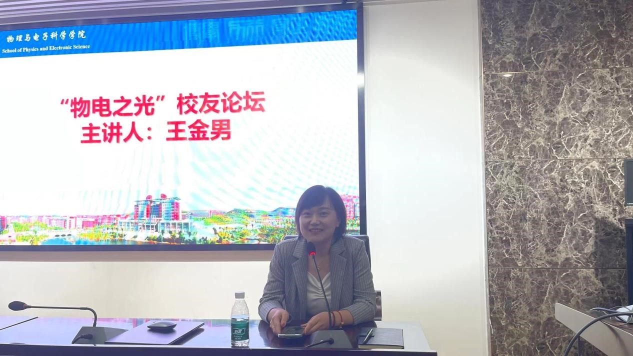 云顶国际vip886604级物理学专业本科毕业生王金男,2008年通过校园招聘进入中国银行湖南省分行工作,从基层柜员岗位逐步学习成长,目前担任长沙市开福支行营业部主任,工作期间荣获集团劳动奖章、中银工匠等荣誉称号,她结合工作实际,从“保持独立不被定义,认识自己相信自己,积极融入不断学习,顺势而为乐观进取”四个方面进行了职场经历分享。