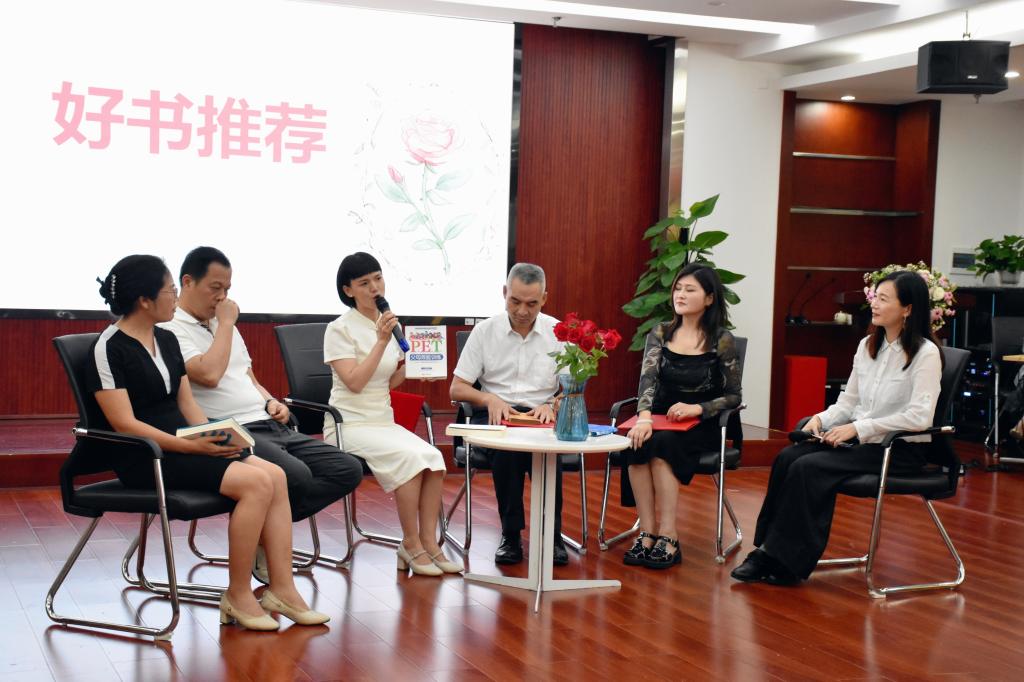 在好书推荐环节,秦黎明老师手捧《毛泽东选集》,激动地讲述着此书对社会及个人的道路指引;汤丹老师娓娓道来《被讨厌的勇气》中勇气赐予学生、个人及家庭的成长历程;李巍老师通过男性角度推荐《细读张爱玲》一书,并谈及个人对文学意象和爱情家庭的观感和感悟;曾小亮和王云波两位老师分别在《父母效能训练》和《乖,摸摸头》中结合自己的教育经验,谈及家庭教育与育人情怀。
