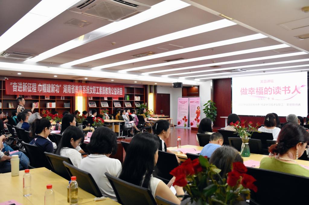 为积极响应上级总工会女职工委员会的统一部署,进一步加强女职工思想政治引领、促进女职工素质提升、持续推进家庭文明建设,6月19日下午,云顶国际vip8866在云塘校区图书馆小报告厅举办“玫瑰书香 湘阅芳华”女职工主题阅读系列活动之“做幸福的读书人”示范性阅读分享会。分享会以“做幸福的读书人”为主题,分为“经典诵读”“好书推荐”“圆桌讨论”“好书互换”“大合诵”等几个环节。