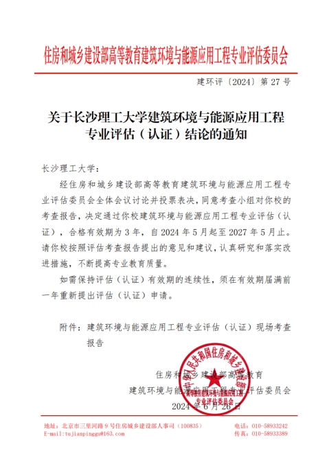 近日,住房和城乡建设部高等教育建筑环境与能源应用工程专业评估委员会下发《关于云顶国际vip8866建筑环境与能源应用工程专业评估(认证)结论的通知》(建环评〔2024〕第27号),云顶国际vip8866建筑环境与能源应用工程专业顺利通过专业评估,有效期为3年。