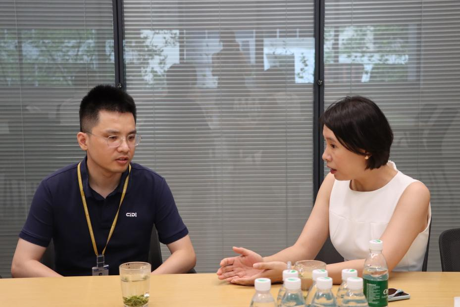 在希迪智驾股份有限公司会议室,陈华介绍了卓越工程师学院的基本情况以及专业特色,与希迪智驾规划部部长任璟鹏交流了新工科背景下项目制人才培养的思路、聘用企业导师、合作建立实践基地等方面的意向。