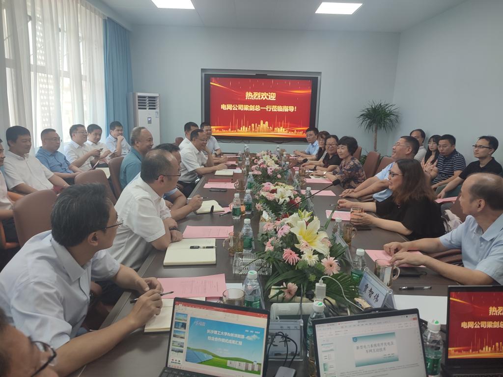 国网湖南省电力有限公司相关单位负责人、学校电气学院、计通学院的教授、博导及青年骨干教师,中国科学技术大学现代物流与供应链实验室,中科闻歌长沙分公司,林洋能源集团,华自科技股份有限公司等单位相关负责人参加座谈交流。