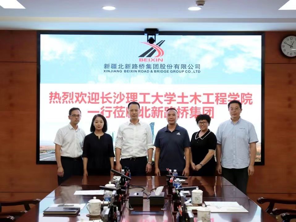在北新路桥集团,江河一行首先参观了北新数智中心,了解了公司发展历史、文化内涵和社会贡献。之后,北新路桥集团党委书记、董事长张斌会见江河一行。张斌介绍了集团发展现状、战略规划、人才储备与培养规划以及集团科技创新、新能源产业发展等情况。江河介绍了学校的学科建设、科研水平、办学优势等情况。双方围绕企业战略发展人才规划、高层次人才培养、毕业生吸纳等方面进行了深入交流洽谈,并就探索产学研深度融合达成共识。