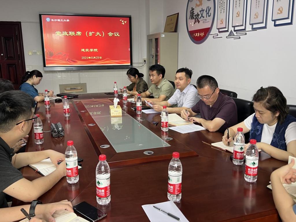 8月29日下午,建筑学院在金盆岭校区16教305召开2024年秋季学期第一次党政联席(扩大)会议,全体院领导、各系室正副主任、各支部书记、副书记参加会议。会议由学院党委书记熊鹰主持。