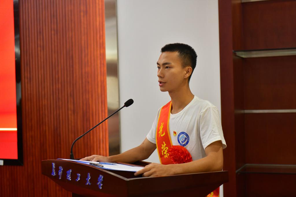 入伍新兵周志聪作为学生代表发言,他表示,将积极响应习近平总书记“自找苦吃”的号召,到部队中去学知识、受磨炼,以“博学、力行、守正、拓新”的校训作为箴言,努力成为一名“有灵魂、有本事、有血性、有品德”的新时代革命军人。