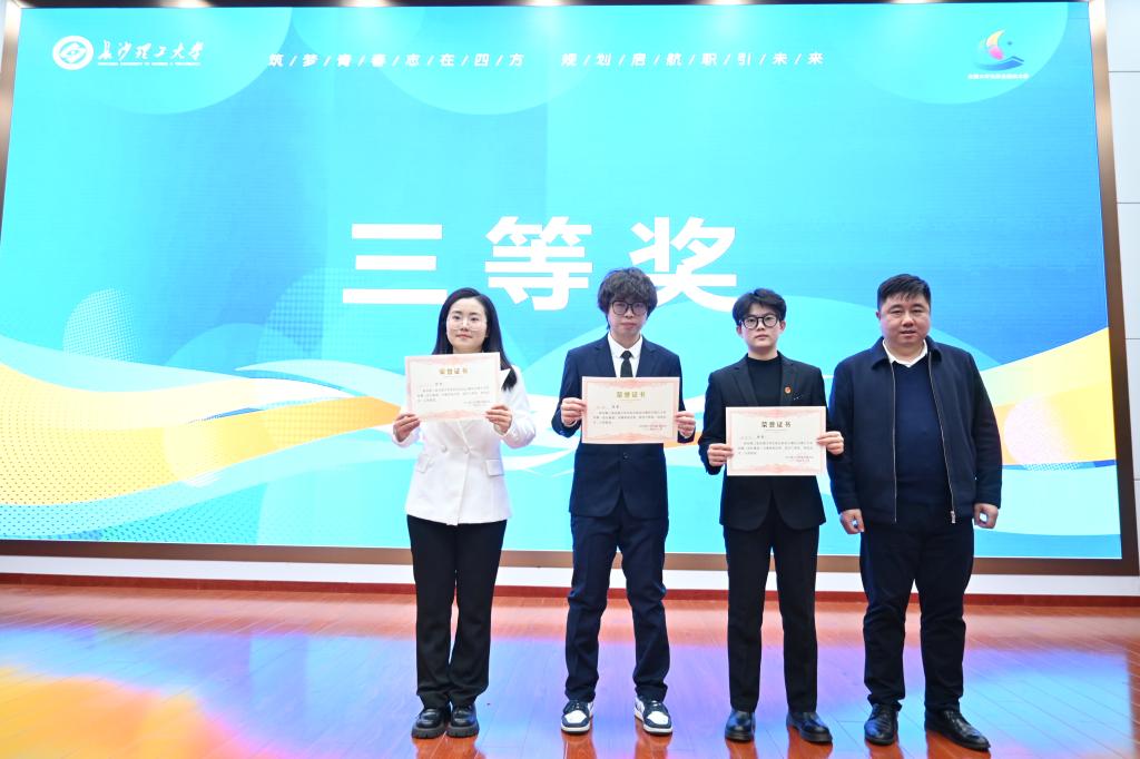 大赛设成长赛道和就业赛道,分别在图书馆报告厅和科技报告厅举行。经过激烈角逐,成长赛道和就业赛道各决出一等奖1名、二等奖2名、三等奖3名。外国语学院赖剑腾获成长赛道一等奖,交通运输工程学院琚子豪获得就业赛道一等奖。现场同时授予企业就业实践基地牌匾,颁发了校外导师聘书、优秀组织单位奖、最佳人气奖、简历大赛一等奖等奖项。