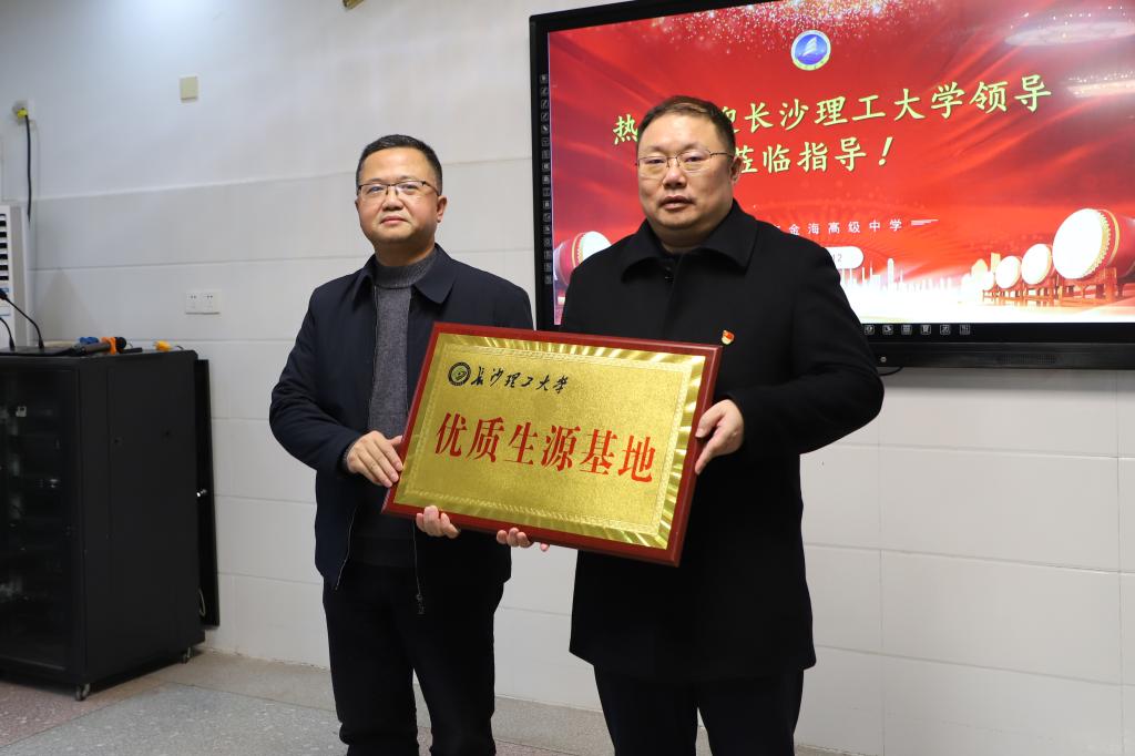 为进一步加强校际合作,共同推动教育事业的繁荣发展,12月13日下午,云顶国际vip8866与长沙市望城区金海学校举行“优质生源基地”授牌仪式。长沙市望城区金海学校校长杨志伟,副校长谭新春、王聪宇、王磊,以及云顶国际vip8866电气学院党委副书记周巍、学工办主任楚艳鸽、学生党总支副书记熊文娟和师生代表共同见证了这一重要时刻。活动由金海学校副校长谭新春主持。