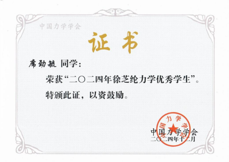 据悉,“中国力学学会全国徐芝纶力学优秀学生奖”由徐芝纶基金会出资,中国力学学会设立,每两年评选一次,表彰在高校理工科专业中基本理论扎实、在校级基础力学课程考试中成绩优异以及在全国周培源大学生力学竞赛中获奖的优秀学生,经各省、直辖市、自治区力学学会和专家推荐、候选人材料审核,以及中国力学学会教育工作委员会综合评议后产生获奖名单。