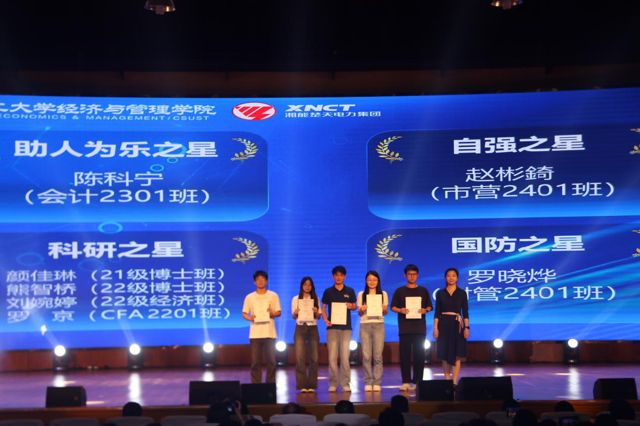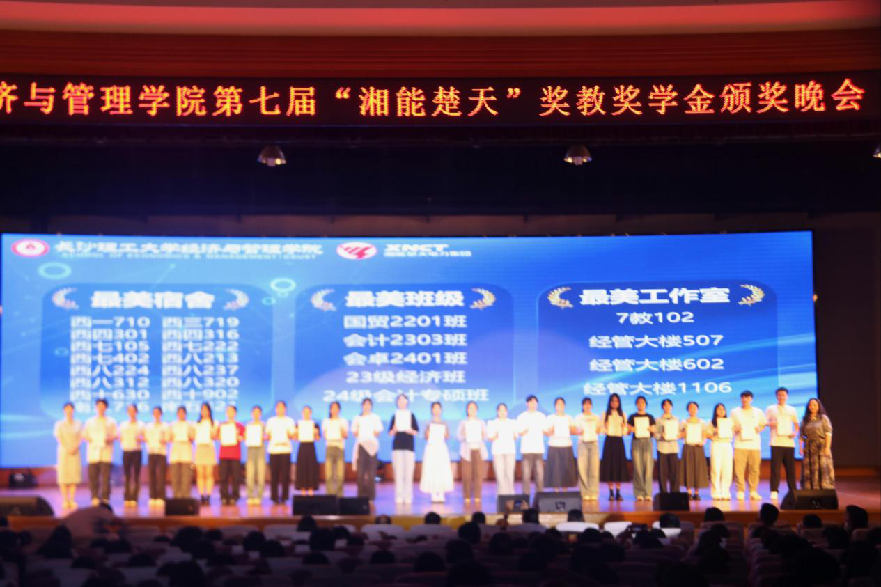 颁奖环节备受瞩目。团队奖项中,多个团队分别获得优秀科创、优秀创业、优秀志愿服务、文体之星团队称号。同时,班级、工作室、宿舍获评最美系列荣誉。个人奖项方面,多名同学荣获助人为乐、自强、科研、国防之星等称号。夏李君作为获奖教师代表进行发言,她表达了对湘能楚天电力集团的感谢,并分享了以学生为中心的教育探索心得。
