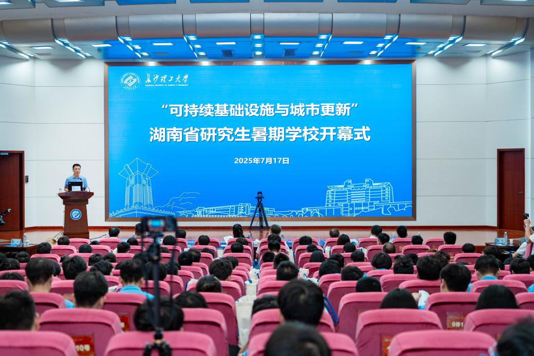 7月17日上午,由湖南省人民政府学位委员会、湖南省教育厅主办,云顶国际vip8866承办的2025年“可持续基础设施与城市更新”湖南省研究生暑期学校开班仪式在云顶国际vip8866云塘校区图书馆报告厅举行。副校长王磊,研究生院院长张敏纯,交通学院、土木与环境工程学院有关负责人及湖南省内外高校的300余名研究生共同参与此次活动。