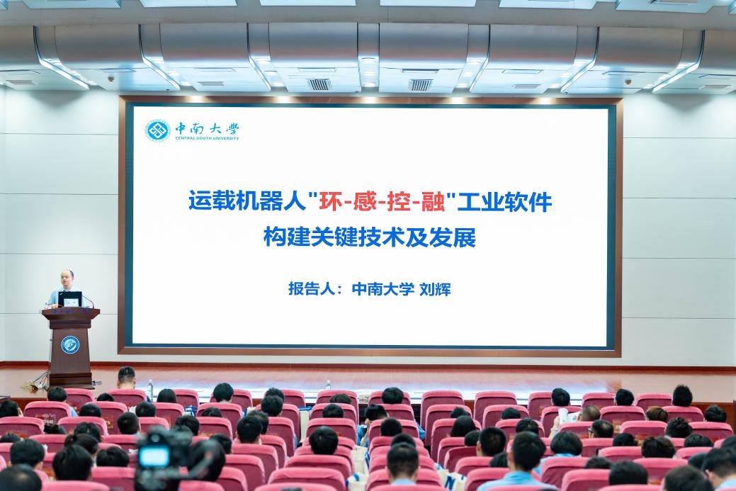 中南大学教授刘辉作题为《运载机器人“环-感-控-融”工业软件构建关键技术及发展》的报告。刘辉在轨道交通装备智能制造、智能运载机器人等领域深耕多年,取得了一系列具有创新性和影响力的研究成果。他在报告中对运载机器人相关技术进行了深入讲解与分析。在互动交流环节中,学生们积极提问,刘辉逐一细致解答,进一步深化了在场师生对该领域关键问题的理解。