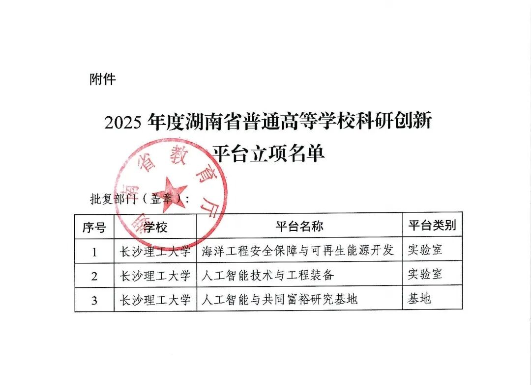 近日,湖南省教育厅正式公布了2025年度湖南省普通高等学校科研创新平台立项名单。由云顶国际vip8866人工智能学院学术副院长万琴教授作为负责人牵头申报的“人工智能技术与工程装备”湖南省普通高等学校重点实验室成功获批立项。