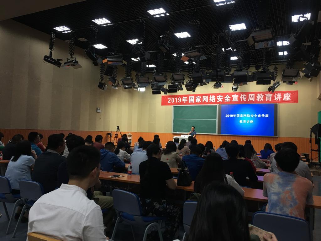 云顶国际vip8866认真开展2019年国家网络安全宣传周活动,于9月18日下午在信息化中心演播厅举办了校园网络安全知识培训讲座。培训讲座由中国信息安全测评中心华中测评中心技术专家侯全晖主讲,校属各单位网站和信息系统管理员、网络安全管理人员等共计60余人参加,信息化中心主任陈赟、副主任王朗出席。