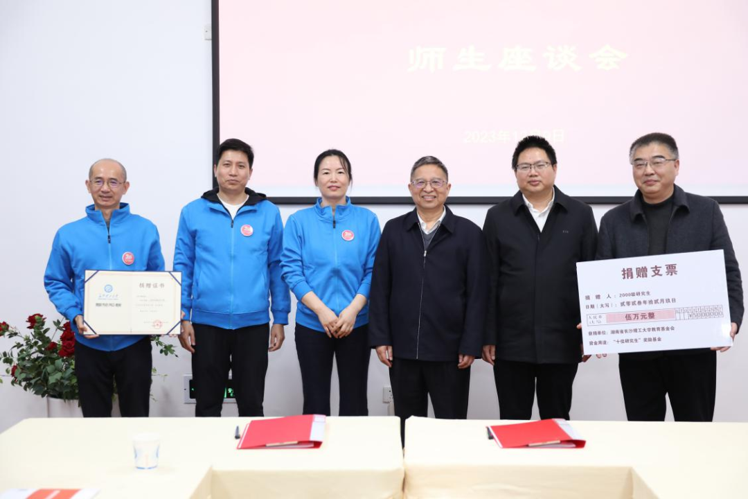 为回馈母校的培养,2000级研究生校友通过校友基金会设立了研究生奖学金,助力学校研究生院的发展,并捐赠了五万元。
