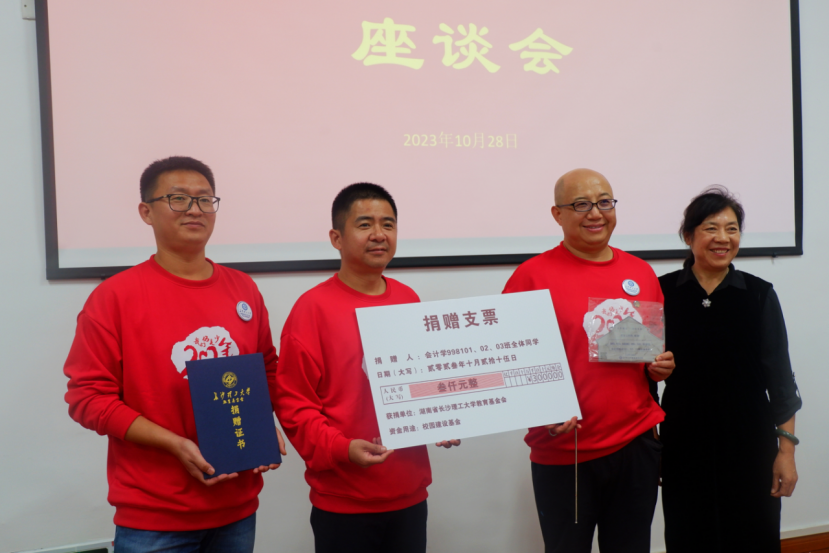 座谈会上,会计99级校友们向母校捐赠3000元,用于校园绿化建设。