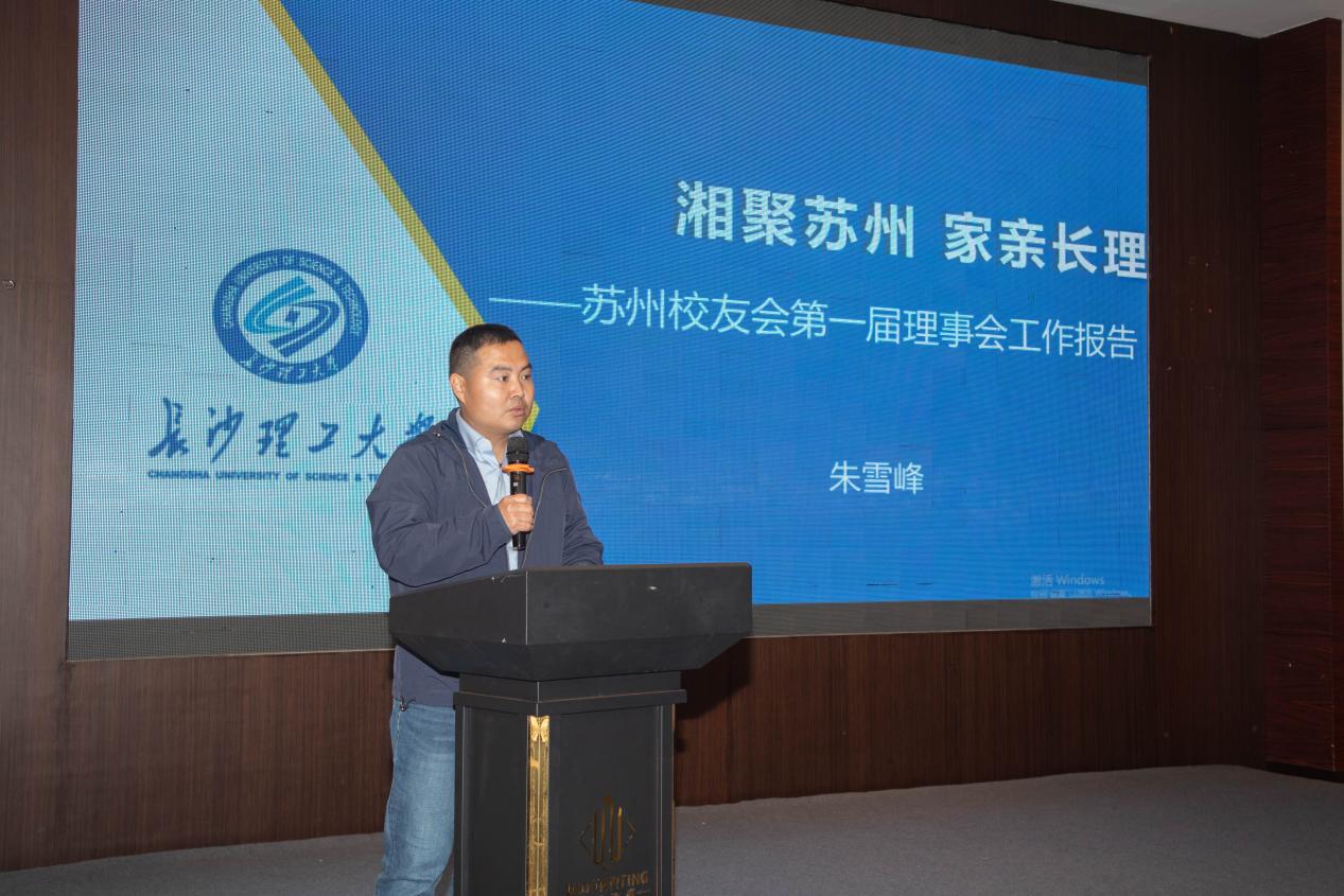 苏州校友会秘书长朱雪峰深情回顾了近年苏州校友会建设情况,介绍了苏州“校友之家”以母校为纽、结合本地特色形成的“年会、健步行、迎新送新、文体活动”四大品牌校友活动。