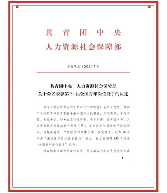 校友风采 | 宛璐获评“全国青年岗位能手”