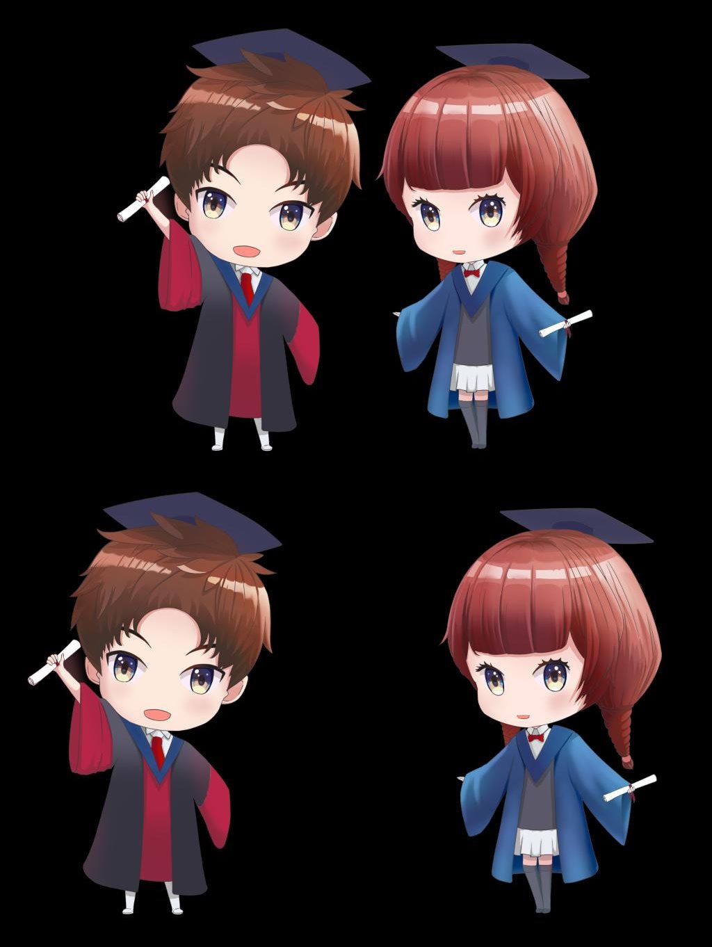 五、吉祥物“金仔云妹”(日常版、学位服版本,JPG格式、PSD格式)