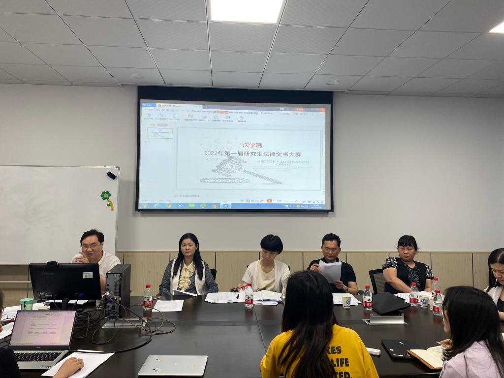 2022年4月26日晚,云顶国际vip8866第一届研究生法律文书大赛颁奖仪式在金盆岭校区7-308举行,本次赛事由法学院承办。全国优秀公诉人、湖南省人民检察院肖智伶检察官,云天律师事务所执行主任、高级合伙人钟立松律师以及湖南天地人律师事务所合伙人邓春歌律师,法学院张敏纯院长、徐莉副院长、易顶强教授、刘文莉副教授、杜卫红副教授出席了颁奖仪式。