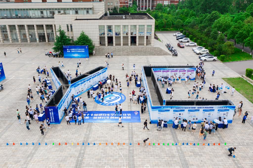 本次成果展采取“团队介绍+现场展板”的方式,用图片、实物、视频等多种方式集中展示了学校第四次党代会以来,研究生在科技创新和实践创新方面取得一系列成果。展会现场的立式展示牌整齐划一,每个立牌都属于一个团队的展示区域,整体从空中俯瞰成“YC”字样,意为“研创”的首个字母缩写,蕴含着研究生创新成果的展示目标和美好愿景。