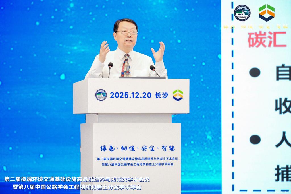 12月19日至21日,第二届极端环境交通基础设施高品质建养与防减灾学术会议暨第八届中国公路学会工程地质和岩土分会学术年会在湖南长沙举行。来自全国相关领域的近400位知名学者、行业精英齐聚一堂,聚焦极端环境交通基础设施绿色材料、长寿结构、智能建造、智慧运维、安全韧性、防灾减灾等研究热点与前沿方向展开深入探讨。
