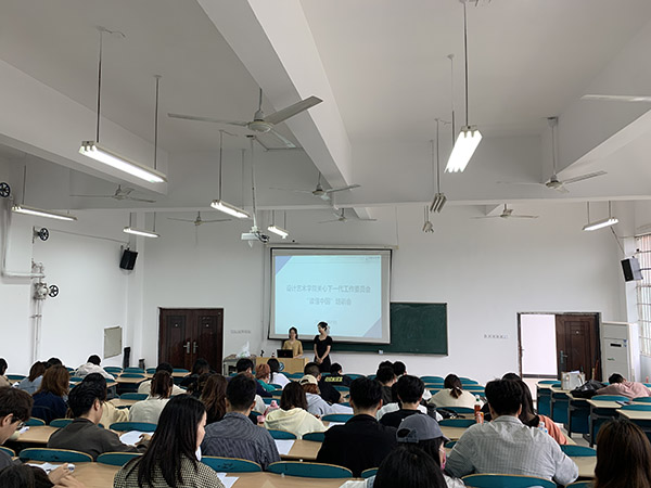 设计艺术学院于 2022 年 4 月 21日在艺术楼A102组织入党积极分子、党员代表观看“读懂中国”培训会录像。学院党委副书记万馨,党建辅导员傅冰出 席本次活动。