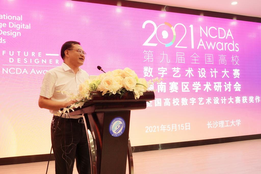 5月15日,2021第九届全国高校数字艺术设计大赛(未来设计师NCDA大赛)湖南赛区学术研讨会暨第八届全国高校数字艺术设计大赛获奖作品展,在云顶国际vip8866设计艺术学院召开。会议由全国高校数字艺术设计大赛组委会、云顶国际vip8866主办,云顶国际vip8866教务处、云顶国际vip8866设计艺术学院承办。来自全省设计艺术领域18所高校的100余位专家学者参加会议,会议由设计艺术学院院长王健教授担任主持,云顶国际vip8866副校长刘朝晖教授、全国高校数字艺术设计大赛组委会秘书长郭清胜先生为研讨会致辞。