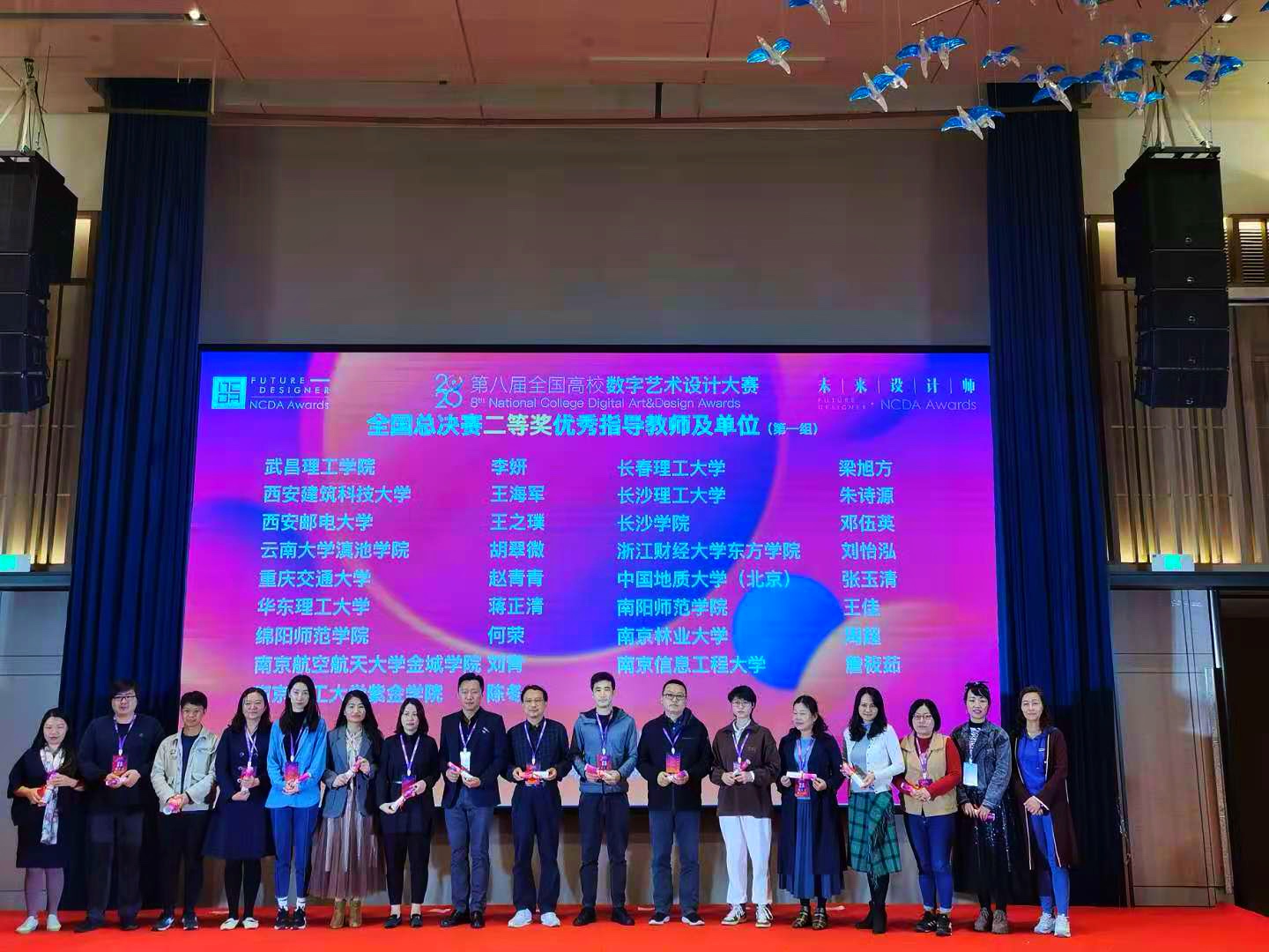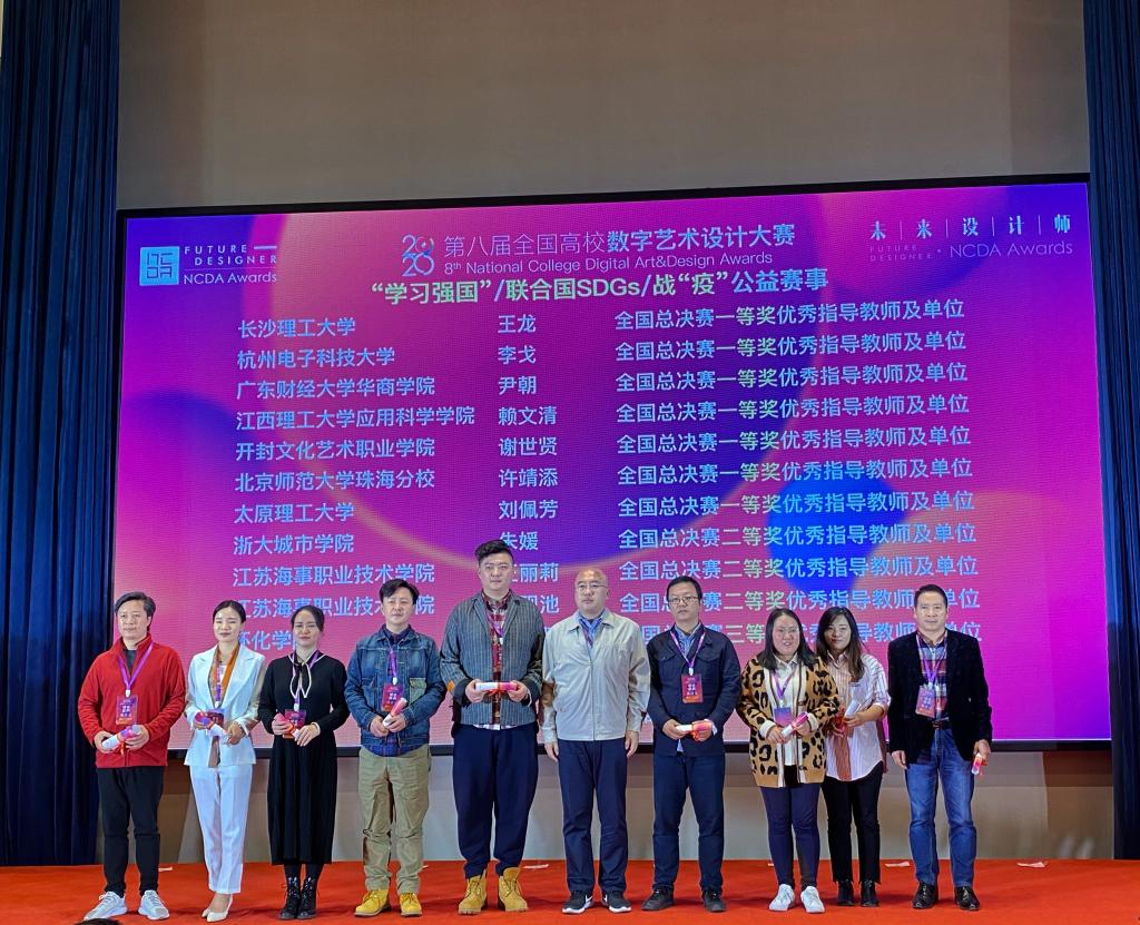 由工业和信息化部人才交流中心主办的“未来设计师”第八届全国高校数字艺术设计大赛(NCDA)颁奖盛典于11月14日在浙江嘉兴完美落幕。我院王龙、朱诗源两位老师出席此次颁奖盛典。