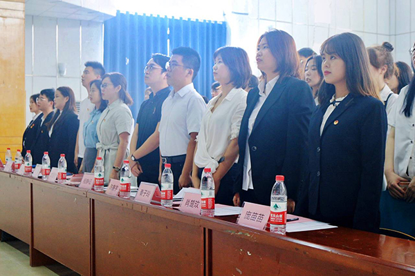 在庄严的国歌声中拉开了会议的序幕,第十一届团委学生会主席彭蝶同学作为代表作本年度学生工作总结报告,学生干部罗乾同学宣读《大会选举办法》。四十位学生干部候选人分别进行了竞职演说。候选人讲述这一年来的工作经历与心得,述说着对未来工作的热情与展望,体现了对自己的期待与自信。秉着公开公平公正的原则,投票环节有条不紊开展。紧接着李慧进行了总结发言,强调学生干部应在学习和工作中起到良好的标杆作用,严以自律,营造积极向上的工作氛围。文丽丽则从“四个意识”、“四个自信”与“两个维护”出发,切实转变学生会工作性质,畅通信息渠道引领学生听党话跟党走,最后全体成员合影留念。