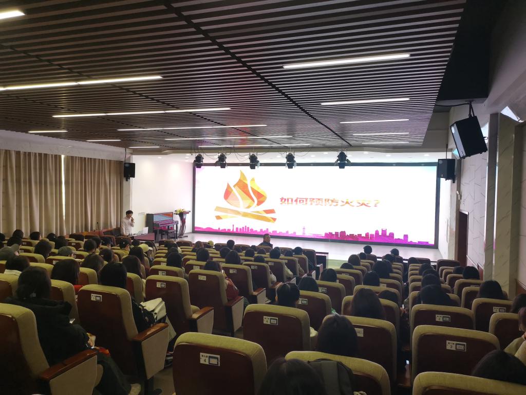 消防安全知识讲座中,宣讲教官结合校园消防安全现状和实际情况进行深入讲解,运用各类火灾案例,详细讲解突发火灾基本常识、消防器材使用及自救方法等消防基本理论知识,并着重提出学生宿舍及实验室消防安全管理。