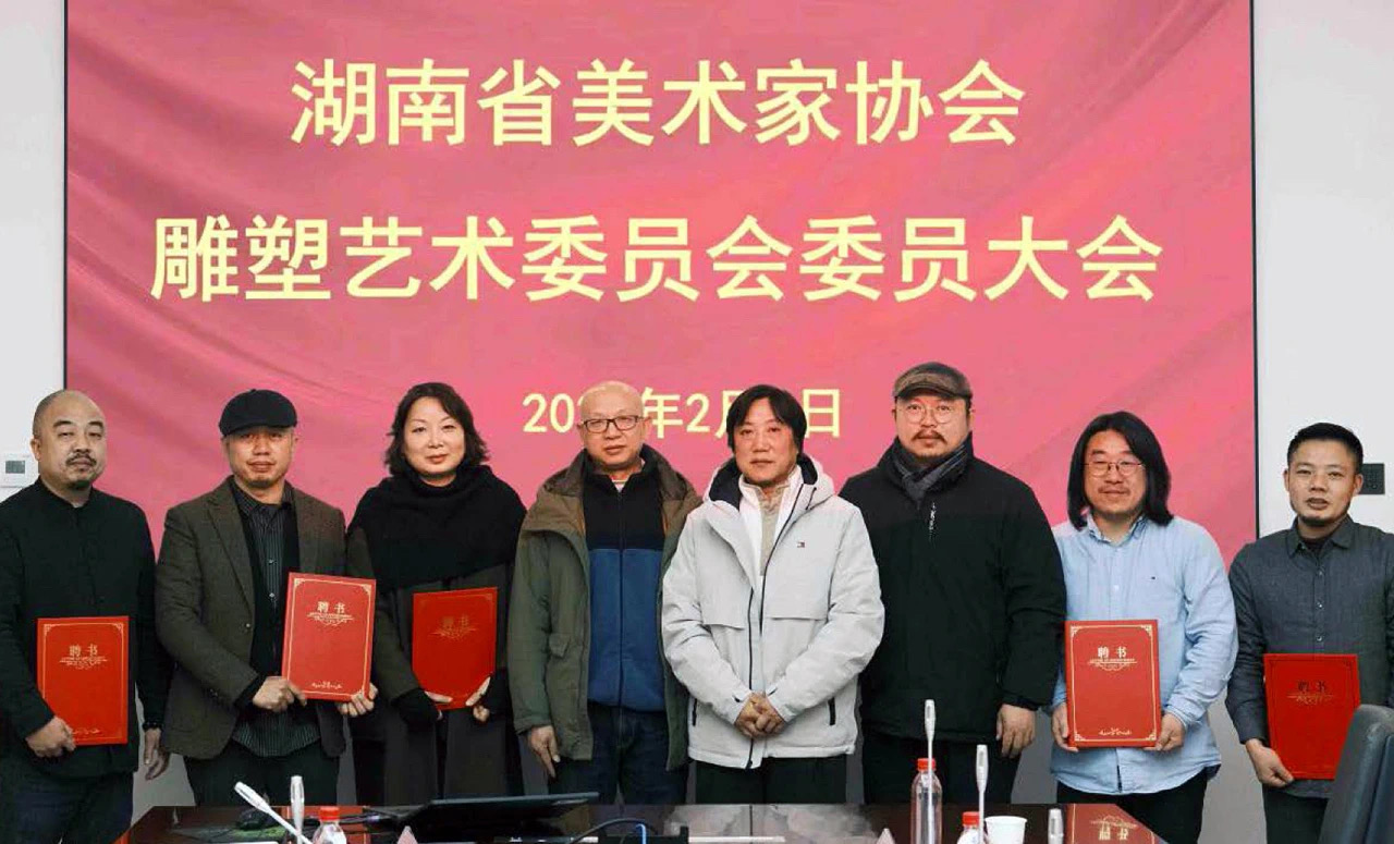 2024年2月6日上午,湖南省美术家协会雕塑艺术委员大会在长沙召开。湖南省美术家协会副主席、我院肖小裘教授等协会领导及省内部分知名雕塑艺术家出席了会议。会议选举了新一届省美协雕塑艺术委员会领导班子。我院朱世郎老师当选为省美协雕塑艺术委员会主任,欧偲、阙真喜、杨志刚、尹建辉当选为雕塑艺术委员会副主任。