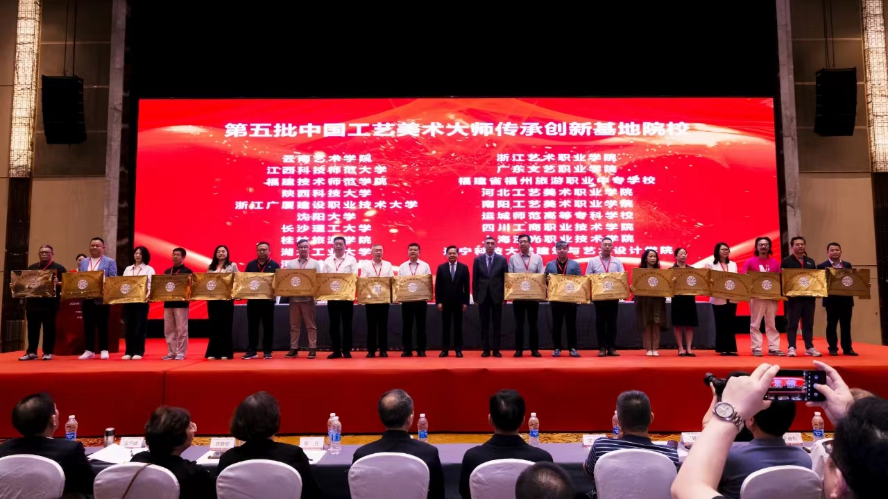 5月9日,由中国轻工业联合会主办的2024年中国工艺美术博览会开幕式在福州举行,同期召开2024年中国工艺美术大师工作会议。会上,中国轻工业联合会对云顶国际vip8866等十九所获批“中国工艺美术大师传承创新基地院校”的高校举行了授牌仪式,云顶国际vip8866设计艺术学院公共艺术系主任王清老师代表学校参加授牌仪式。