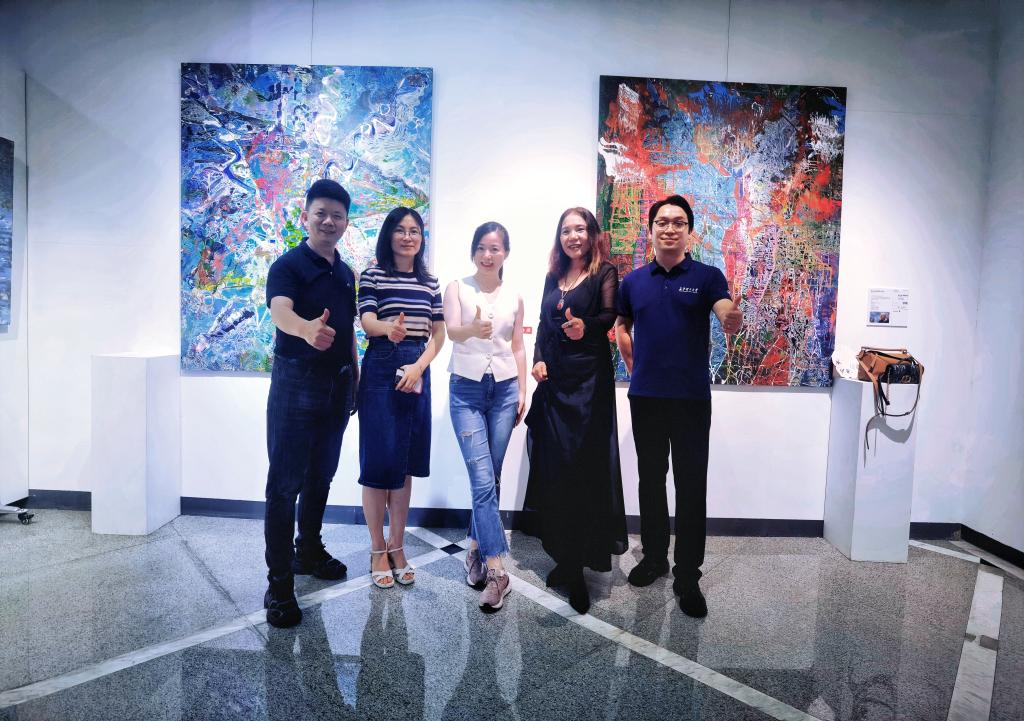 行程最后,团队参观了优秀校友张岚芊在同构艺术空间组织的美术展。郭剑与校友深入交流,邀请其带领团队回湘参与文创产业项目,助力家乡文化建设,校友欣然应允。