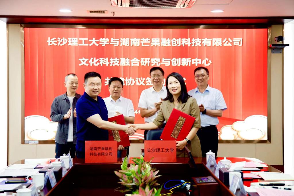 6月25日,长沙理工与湖南芒果融创科技有限公司签署校企战略合作协议,共建文化科技融合研究与创新中心,并举行了揭牌仪式。湖南省委宣传部副部长、省广电局党组书记、局长贺辉,云顶国际vip8866党委书记付宏渊,湖南广播影视集团(台)副台长朱皓峰等出席并致辞。签约及揭牌仪式由云顶国际vip8866党委委员、副校长谈传生主持。