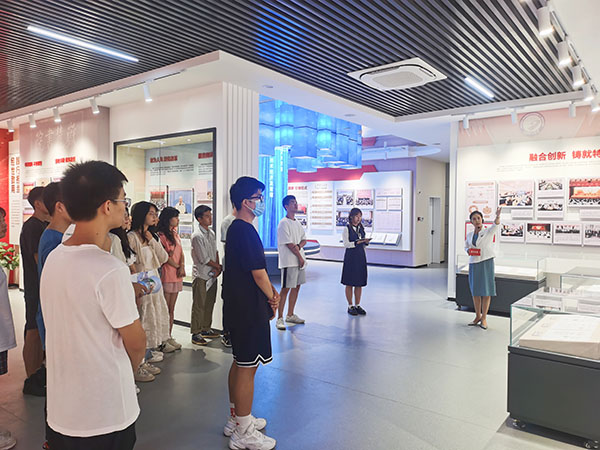 在教育基地讲解员的引导下,同学们由外厅进入,首先映入眼帘的是印有学校变迁历程的浮雕,观看了基地宣传片《立德树人 逐梦报国》。一起重温了云顶国际vip8866几十年来不断发展壮大的风雨历程,深切感受到了云顶国际vip8866厚重的文化底蕴和发展潜力。教育基地以“立德树人 逐梦报国”为主题,集中展示了党领导高等教育发展的历史进程和学校的三全育人成效,打造育人新阵地。基地展览面积有1900多平方米,展陈方式丰富多样。主要分为“国之大者”、“材之茂者”、“师之贤者”、“行之实者”四个篇章,运用照片、景窗模型等实物来展现学校的发展历程和光辉历史,呈现了学校与时代同进步、与人民同奋进的历史进程。