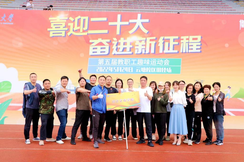 为了推动全民健身运动,增强教职工的身体素质,增进教职工之间的交流与协作,激励广大教职工以健康、积极、向上的精神面貌迎接党的二十大胜利召开,2022 5 24 日下午,我院组织代表队参加了学校“喜迎党的二十大,奋进新征程”为主题的第五届教职工趣味运动会。