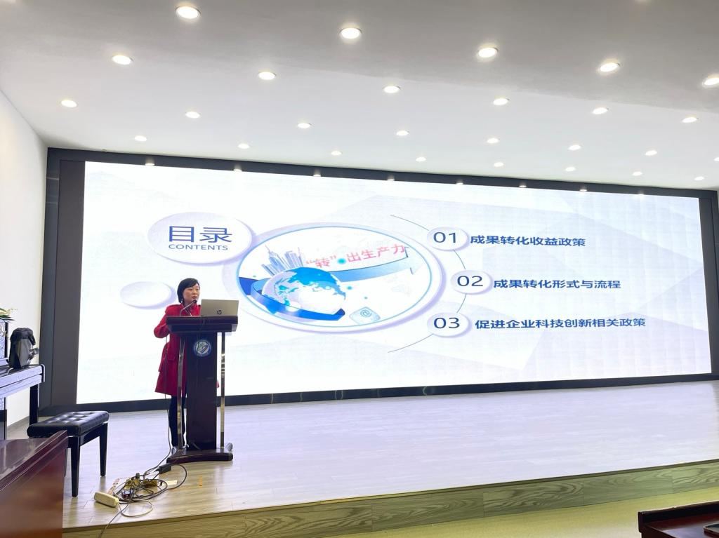 随后,蔡花菲副院长为全院教职工解读了科技成果转化的相关政策,她提出“科技成果只有转化才能实现创新价值,不转换是最大的浪费。”并鼓励老师们积极进行科技成果转化。